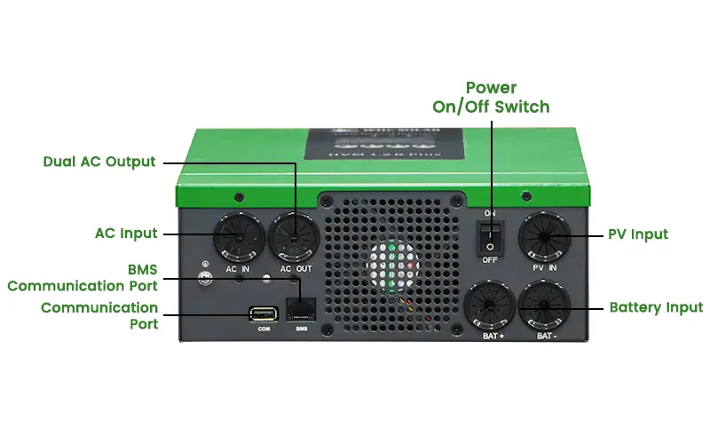 WHC SOLAR HVM 1.2K Plus Hybrid Inverter – a smart pick for wholesalers! 1.2KW rated/2.4kVA surge, pure sine wave. 60A MPPT (18-100VDC), supports Li/Lead-acid, PV/AC activation. IP21, -10~50℃, 3.6kg light. Boost your PV wholesale sales easily!