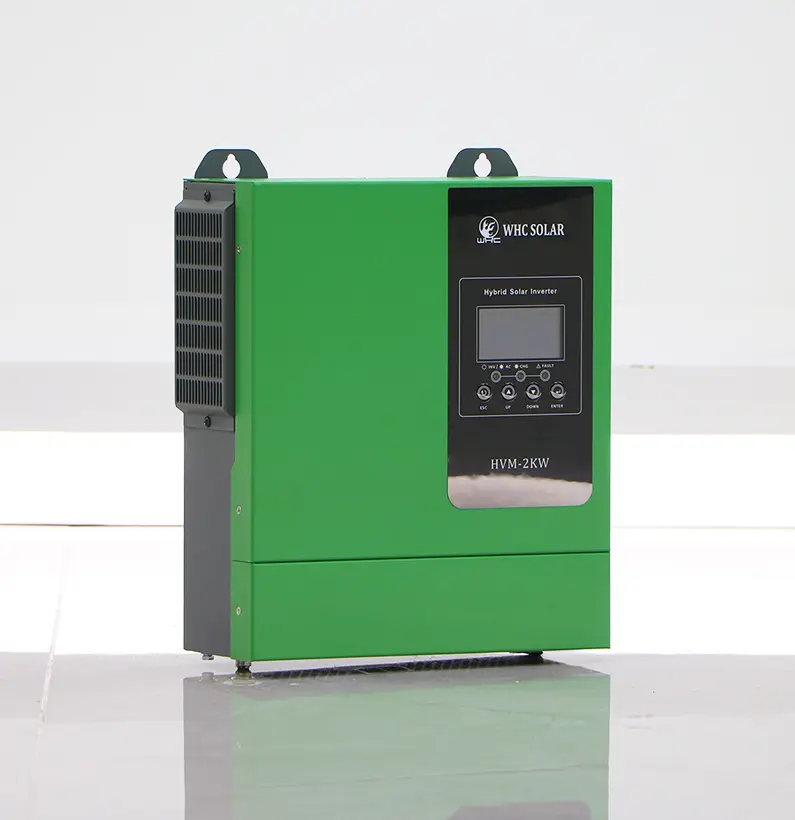 WHC SOLAR HVM-2KW Hybrid Inverter – ideal for wholesalers! 2KW/4kVA, pure sine wave. Li-battery activation via PV&AC, 30A MPPT (30-160VDC). 96% PV-BAT efficiency, -10~55℃ adaptability, 3.8kg light. Boost your PV wholesale sales easily!