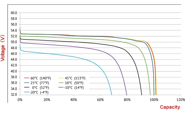 This 51.2V 300AH LiFePO4 battery has a wide operating temperature range, handling diverse environments. It discharges from -20°C to 60°C and charges from 0°C to 45°C. Even at 60°C, it outputs stably, meeting needs in various regions and supporting solar storage, caravans, etc.